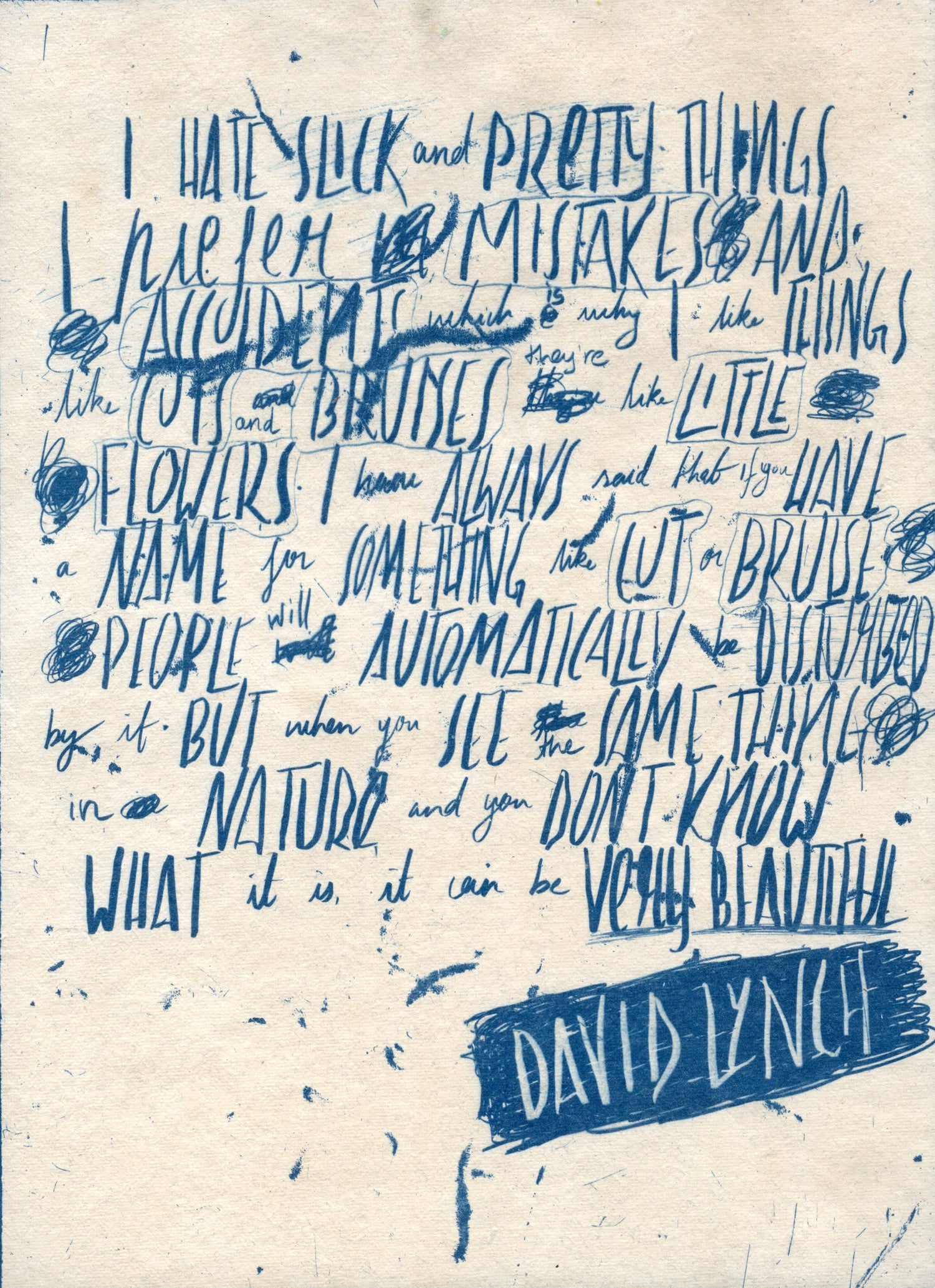 developed in 1842 by Sir John Herschel, this age-old printmaking technique involves using UV reactive chemicals which are xposed to sunlight to produce a cyan-blue print
